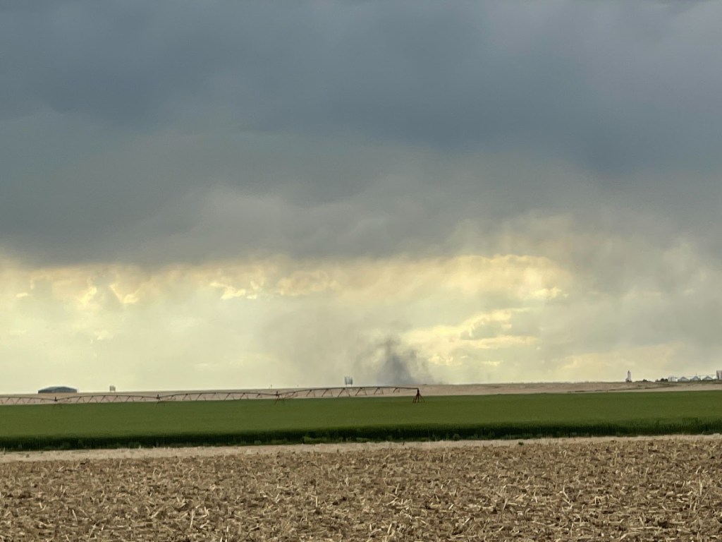We drove south on the road we came north on, and as I was driving I noticed something peculiar in the rearview mirror. I noticed a dust cloud towards the ground and a lowering in the clouds just above, both of which appeared to have some rotation. I casually said, “Dr. Decker, I think there’s a tornado behind us.” Everyone in the van looked towards the back and to their surprise, they saw the same thing. We found a spot on the side of the road to take a better look, and sure enough, it was a tornado! We stopped for a few minutes to get a better look, take some pictures, and admire nature at work. For me, this was the first tornado that I had ever seen so I was very excited, but I was also very cautious of my surroundings.