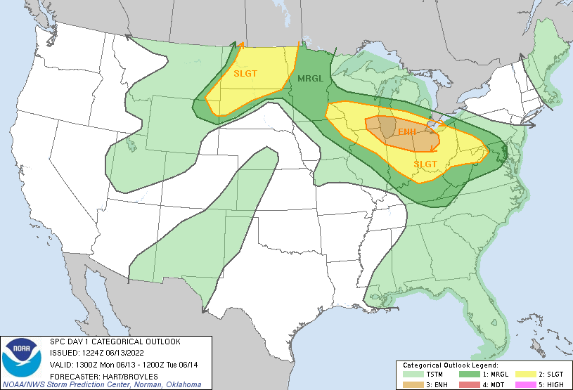 So here’s the breakdown: some isolated thunderstorms were possible along a warm front for Central Illinois and Indiana before getting dominated by an MCS (possibly a derecho based on what models had indicated) expected to develop and track across the area.